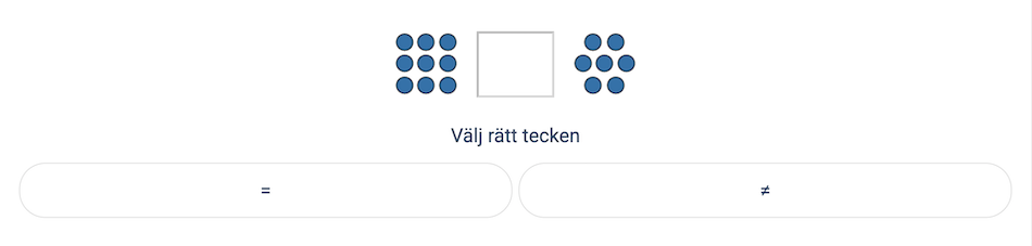 - "Lika med och inte lika med: Jämföra antal (bild och tal)" på nivå 1A