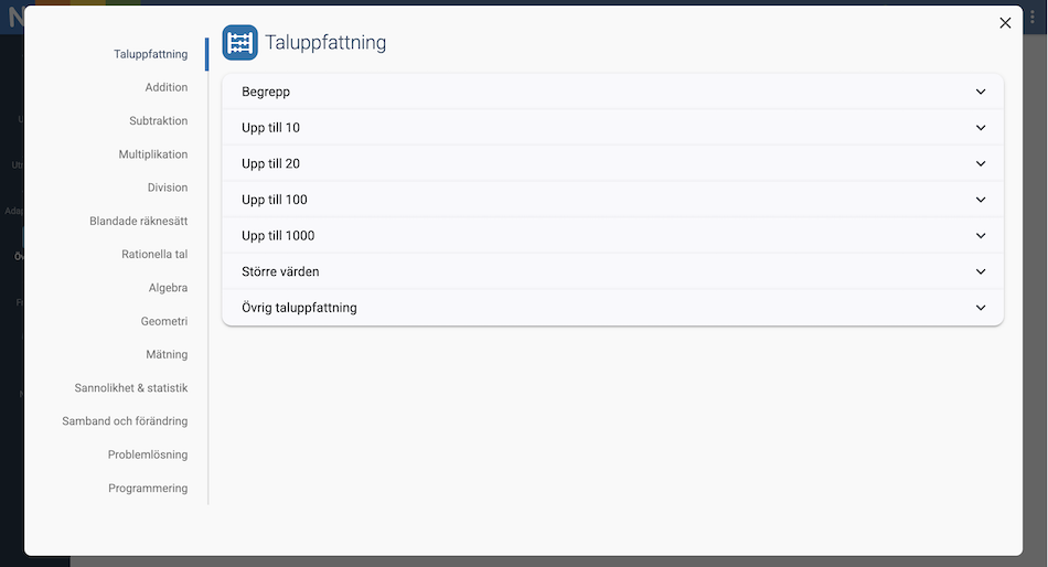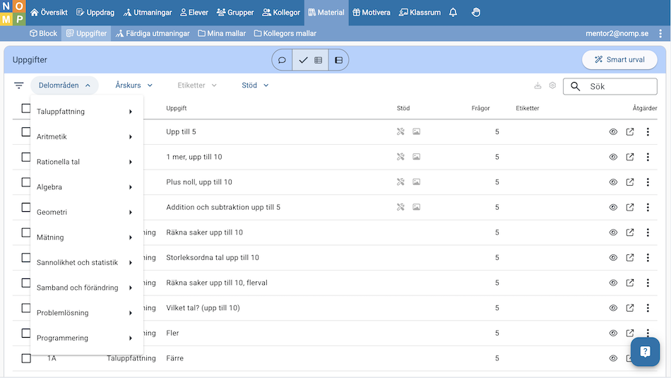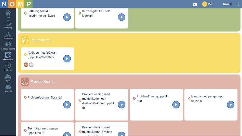 Vi har justerat och förbättrat kategoriseringen av uppgifter i både Nomp Plus och elevdelen. Detta kan märkas på flera olika ställen i systemet, och nedan beskrivs några av dessa.
