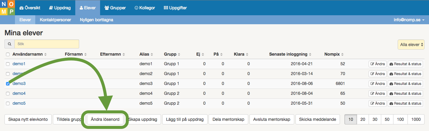 - Du kan lägga till och ta bort elever, lägga till och ta bort uppgifter, och ändra målen för uppgifter.