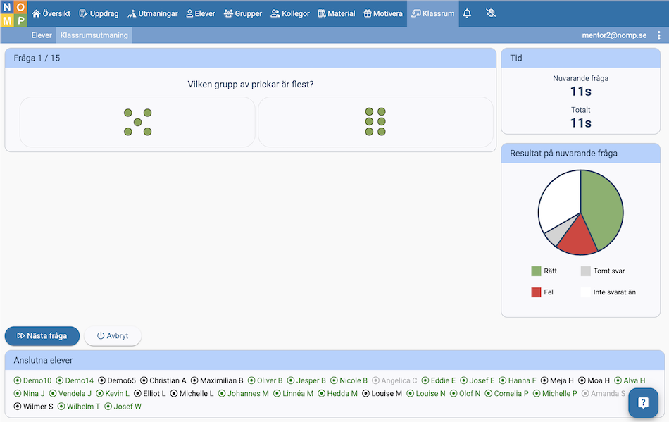 Så här ser det ut i Nomp Plus medan en fråga visas för eleverna: