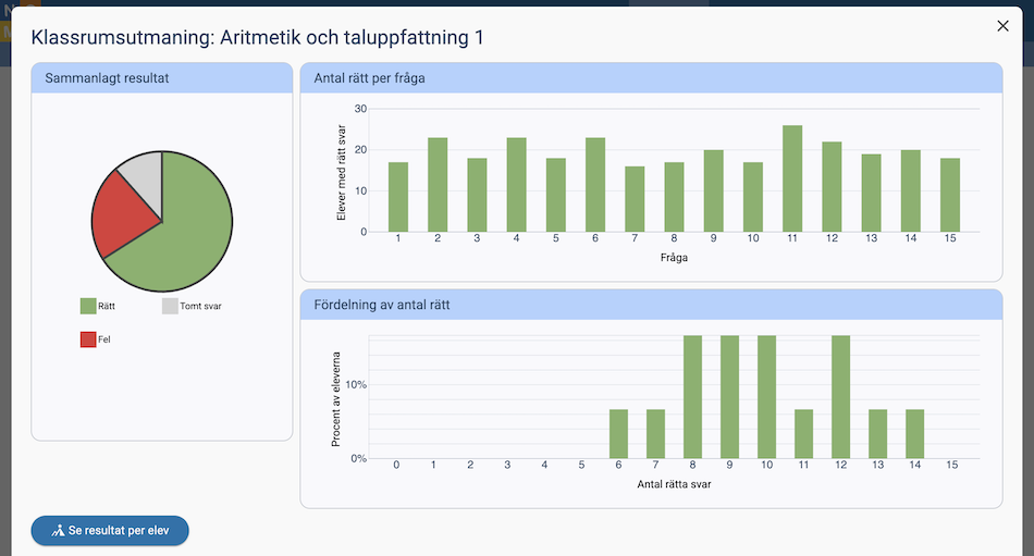 När klassrumsutmaningen är över kan du se resultaten på samma sätt som om eleverna gjort utmaningen på vanligt vis.