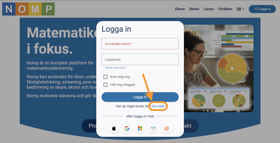 - Klicka på "Gå med" för att registrera en ny Nomp-användare.