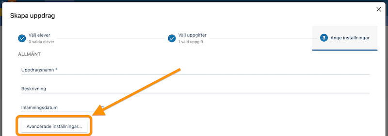 Om du klickar på "Avancerade inställningar..." när du skapar ett uppdrag så kommer du hitta en del användbara funktioner.