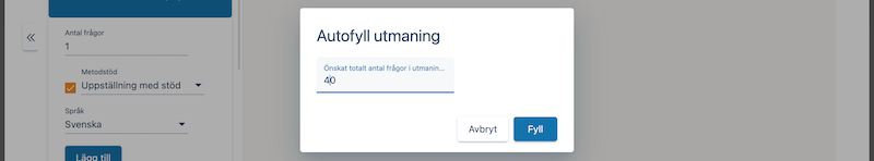 Ange hur många frågor du vill att utmaningen ska innehålla.