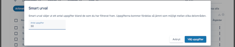 - Systemet väljer nu ut uppgifter upp till det antal du valt, bland de uppgifter som du filtrerat fram.