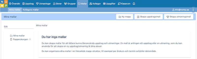 Du hittar alla dina mallar under "Mallar" i Nomp Plus.